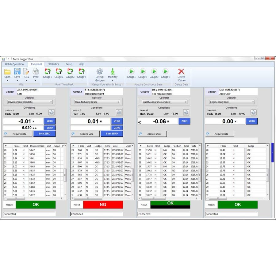 - Wyjątkowa funkcja jednoczesnego zbierania i zarządzania danymi z max. 4 mierników siły.